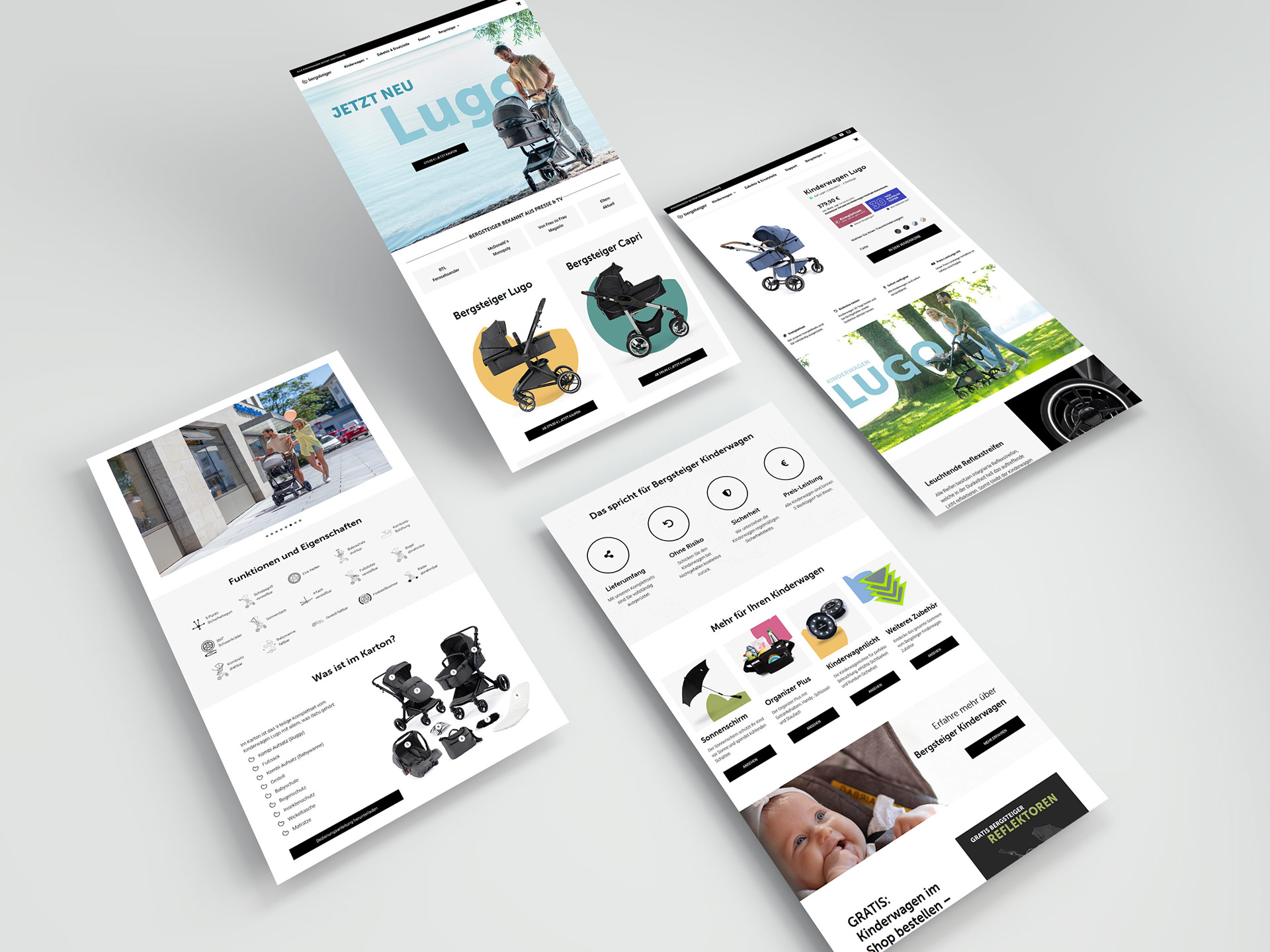 Corporate Identity einer Kinderwagen-Marke mit besonderem Augenmerk auf den Online-Auftritt.