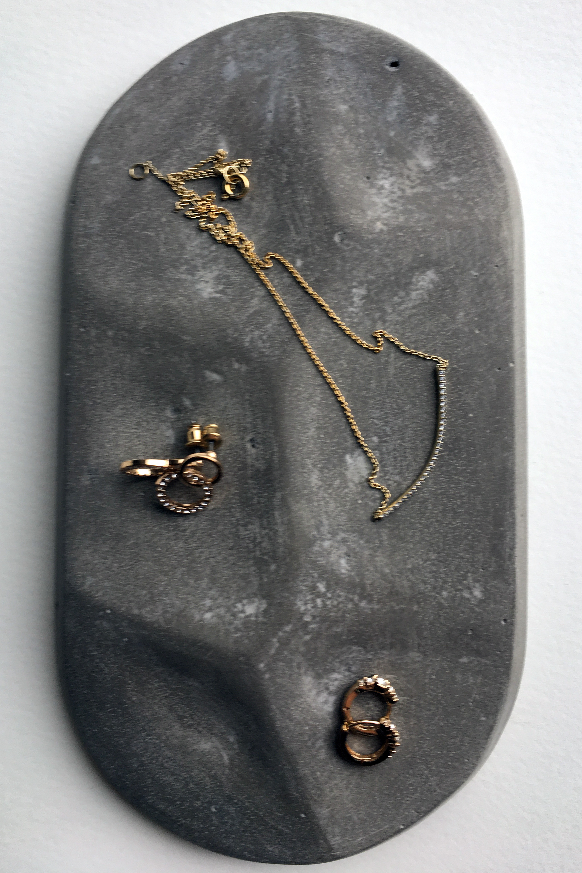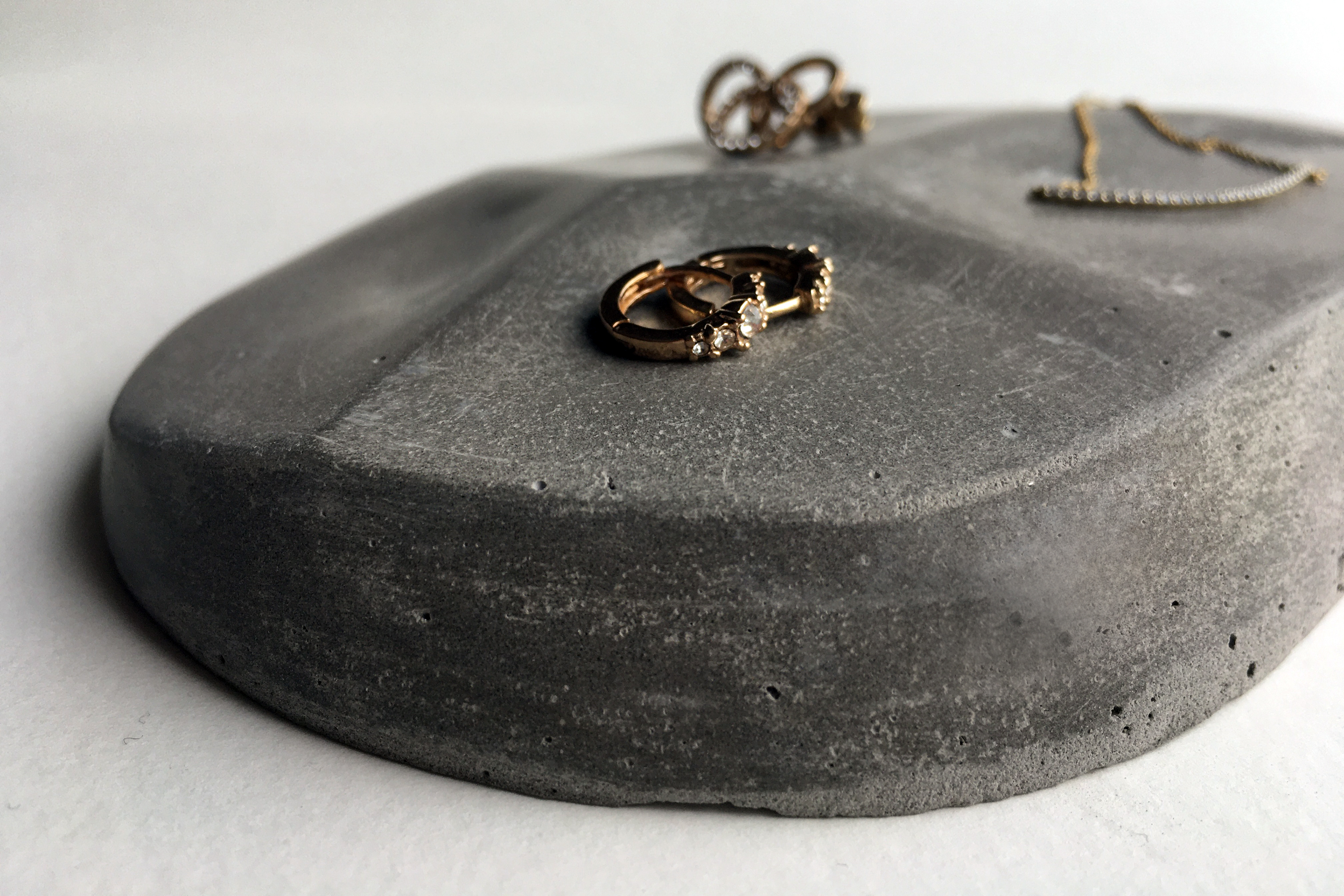 Handgegossene Schale aus Beton, die besondere Stücke angemessen präsentiert.